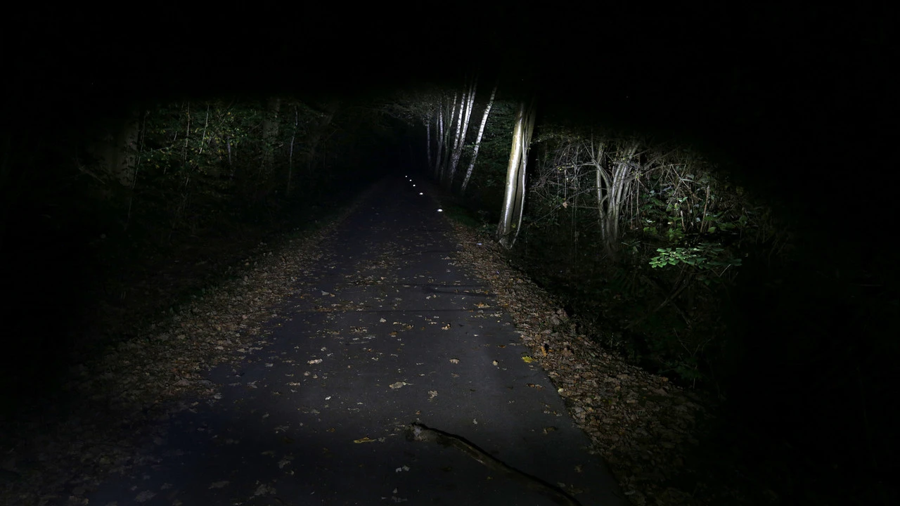 Das Großflächen-Lichtfeld mit Nahfeldausleuchtung ist doppelt so breit wie bei IQ-Tec. Direkt vor dem Fahrrad liegt ein homogen ausgeleuchteter heller Lichtteppich. Die Fahrbahn ist weit wie nie in Licht getaucht.