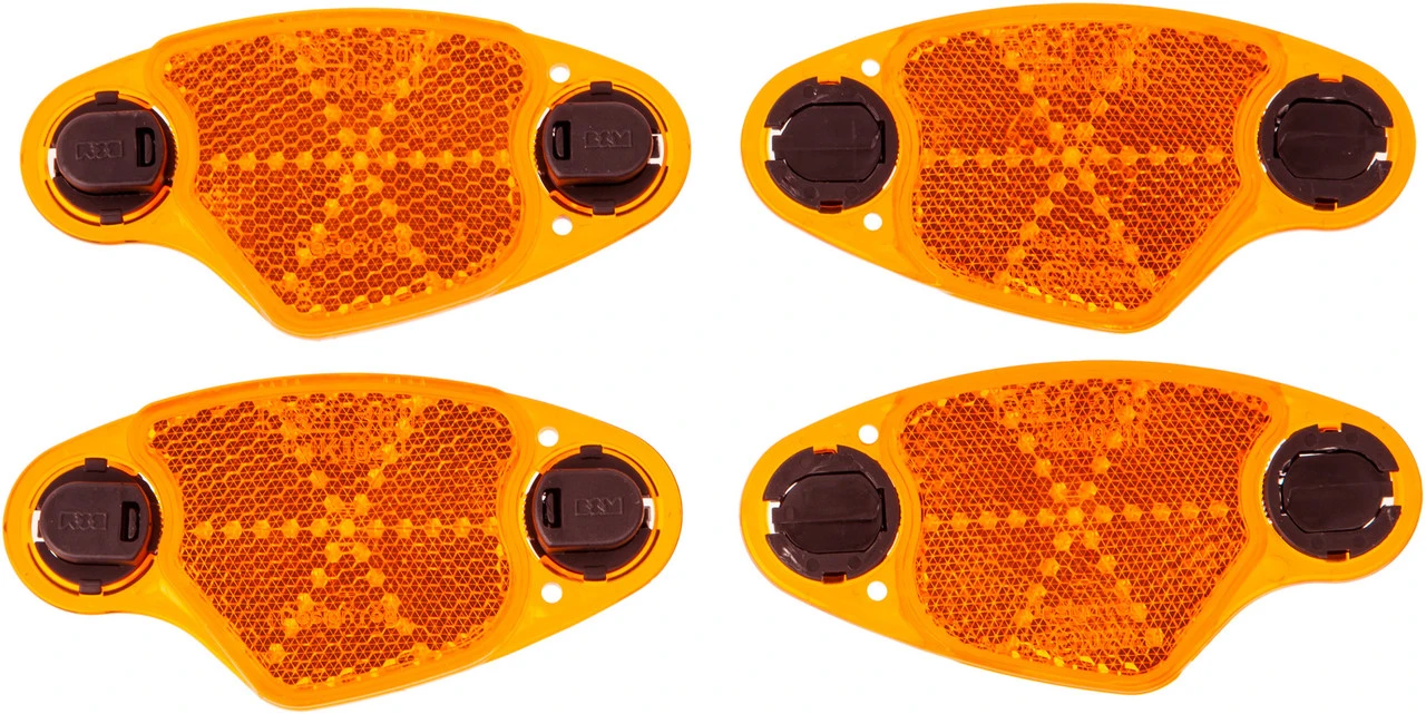 Mit dem busch+müller Speichenreflektor 309 im 4er-Set können sowohl Vorder- als auch Hinterrad mit StVZO-zugelassenen Reflektoren ausgestattet werden. Dank drehbarer Befestigungselemente aus Kunststoff geht kein Reflektor verloren.