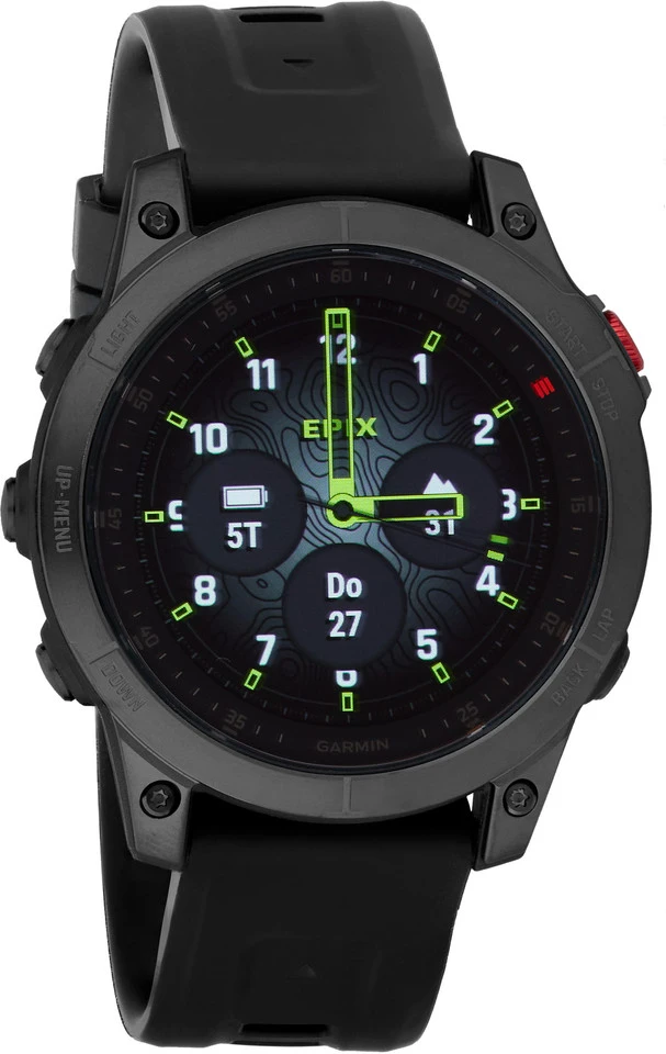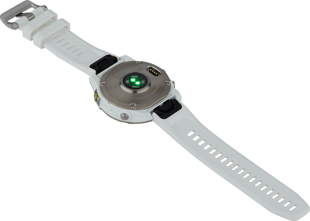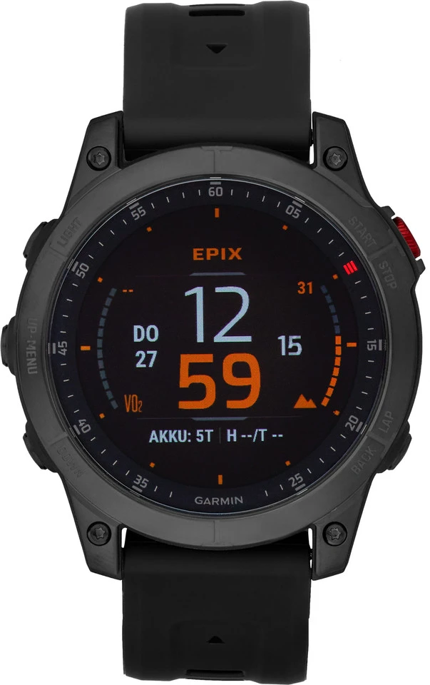 Features:mit AMOLED-Display (Always-On)22 mm breites Silikon-Wechselarmband für Handgelenksumfänge von 125 bis 208 mmkratzfestes Saphir-UhrglasLünette (Zifferblatt-Umrandung) und rückseitiges Gehäuse aus Titanmit Touchscreen, kann auf Wunsch deaktiviert werdenkann via Garmin Connect App mit dem Smartphone gekoppelt werdenmehr als 60 vorinstallierte Sport- und Outdoor-Appsvorinstallierte, animierte Workouts für Cardio-, Kraft-, Yoga-, Pilates- und HIIT-Trainingtägliche Trainingsempfehlungen für Laufen und Radfahren angepasst an Dein Fitnesslevelmit Power Manager zur Einschätzung der verbleibenden Akkulaufzeitvorinstallierte TopoActive-Karten sowie Skiview-Karten für Skiorte und CourseView-Karten für GolfplätzeABC-Sensoren: mit Höhenmesser, Ba