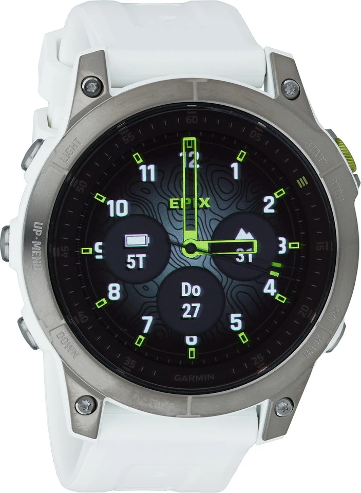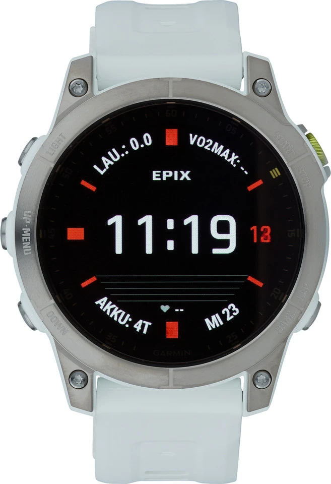 Die epix GPS Multisport-Smartwatch der 2. Generation von Garmin mit Titan-Lünette hat ein robustes Sapphire Uhrenglas und glänzt mit Always-On AMOLED Display, welches auch bei Sonneneinstrahlung lesbar bleibt. Die Uhr lässt sich mit Tasten oder Touchscreen bedienen, bietet Kartennavigation und zahlreiche Sport-Apps und -Profile. Du kannst sie mit Smartphone oder Sensoren koppeln, um ihre Funktionen noch zu erweitern.