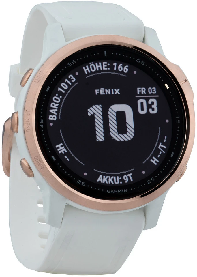 Die fenix 6S Pro GPS Smartwatch von Garmin glänzt durch ihre kompakte Eleganz insbesondere an schmalen Handgelenken und hat alle Pro-Funktionen. Dazu gehören vorinstallierte TopoActive Europa- und Skikarten und verschiedene Musikfunktionen. Mit Garmin Musik kannst Du den internen Speicher für Offline-Playlists von Streamingdiensten nutzen. Außerdem ist die Pro-Version WLAN-fähig und kommt mit einer PacePro-Funktion für steigungsabhängige Streckenplanung. So bist Du für Dein erfolgreiches Training und Dein nächstes Abenteuer gerüstet. Entdecke das Beste in Dir mit der GPS-Multisport-Smartwatch der nächsten Generation. Das verbesserte Design der Lünette (Zifferblatt-Umrandung) mit optimiertem Gehäuse verleiht Deinem Handgelenk Stil.