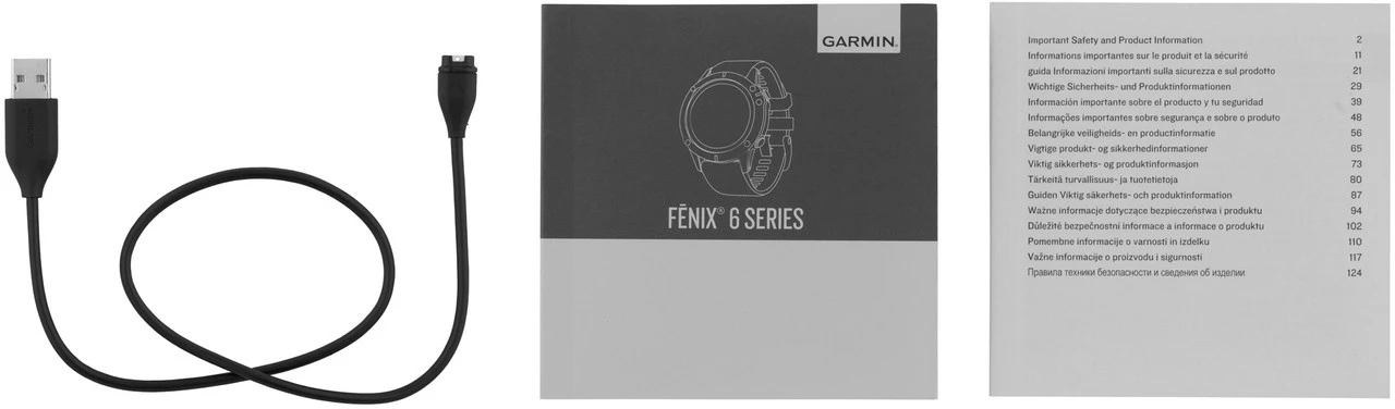 Apps und Software: Garmin Golf™-App; Garmin Connect IQ™-Shop; Garmin Explore™; Garmin Connect™; Garmin BaseCamp™; Garmin Pay™Sensoren: Brustgurt Run HRM-RUN ANT+; Brustgurt Premium HRM Dual ANT+; Geschwindigkeits- und Trittfrequenz-Sensor Set 2; Running Dynamics Pod Laufsensor ANT+; Laufsensor ANT+; tempe Temperatur Funksensor ANT+; HRM-Tri™; HRM-Swim™ kompatible Leistungsmessgeräte dritter AnbieterHardware: Fahrradhalterung für fenixQuickFit™ Wechsel-Armbänder für fenix 6