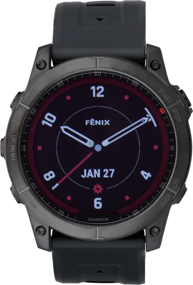 Die fenix 7X GPS Multisport-Smartwatch von Garmin mit Titan-Lünette punktet mit starkem Akku und großem Display. Die Sapphire Solarladelinse sorgt für extralange Akkulaufzeit, sodass Dich die Smartwatch rund um die Uhr bei allen Aktivitäten begleitet. Das transflektive MIP-Display ist auch bei Sonneneinstrahlung gut zu erkennen. Die Uhr lässt sich mit Tasten oder Touchscreen bedienen, bietet Kartennavigation und zahlreiche Sport-Apps und -Profile. Du kannst sie mit Smartphone oder Sensoren koppeln, um ihre Funktionen noch zu erweitern.