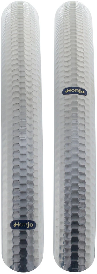 Das H50 Schutzblech Set von Honjo gehört zu den legendären auf Hochglanz polierten Klassikern aus Japan. Die Schutzbleche decken eine Reifenbreite von bis zu 41 mm ab. Mit dem besonders weit umfassenden Profil wird Spritzwasser einwandfrei im Blech gefangen gehalten. Das heißt, auch Füße und Kurbel bleiben trocken. Zudem verfügen die handgearbeiteten Schutzbleche von Honjo über eine edle Optik, ein geringes Gewicht und eine ausgesprochen lange Haltbarkeit. Das H50 gibt es auch als „hammered“ Version, bei Fans von klassischen Rädern eine besonders beliebte Optik.