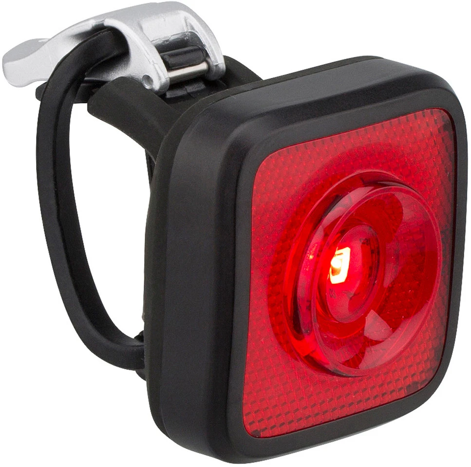 Leistungsstarke Fahrradlampe mit roter LED und integriertem Reflektor.