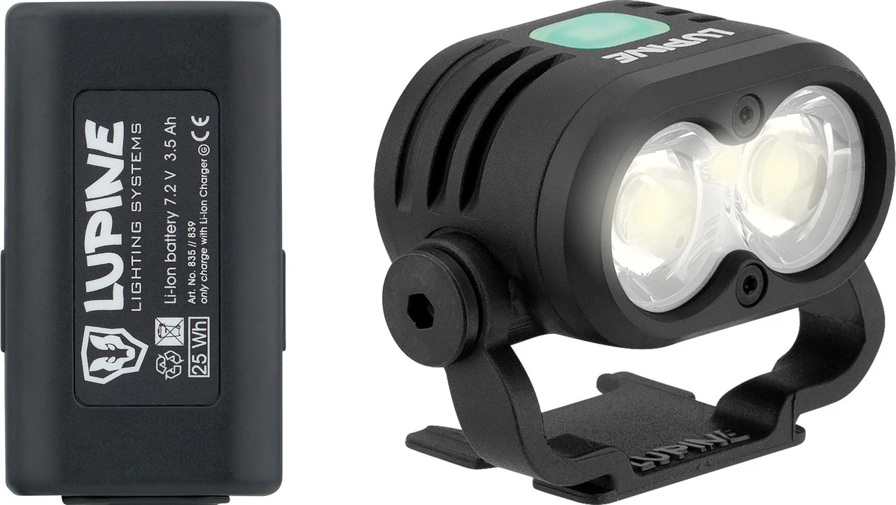 Spezifikationen:Ausführung:Helmlampe (weiß)Leuchtmittel:3 x LED (2 x CREE XM-L3, 1 x XQ-E HI)Leuchtkraft:2100 LumenLeuchtdauer:1:15 (2100 Lumen) – 80:00 (Diffuslicht 40 Lumen) StundenBetriebsmittel:Akku (Li-Ion)Technische Daten Lampe:Material:Aluminium (6061-T6)Leuchtweite:215 mLeuchtmodi:6 Stufen von 0,3 W (50 Lumen) bis 20 W (2100 Lumen), Diffuslicht, SOS, Alpines Notsignal, RVLRSchutzklasse:IP68, IK09Montage:FrontClick HelmhalterungMaße (H x B x T):26 x 43 x 32 mmTechnische Daten Akku:Material:PolyamidKapazität:3,5 AhLadezeit:1:50 StundenSchutzklasse:IP68, IK09Montage:FastClick AkkuhalterungMaße (H x B x T):72 x 40 x 22 mmFeatures Lampe:kleine, leistungsstarke Helmlampe mit RemoteBluetooth-FernbedienungLupine Light Control App22° Optik (Collimated Lens Technology)CNC-gefrästes Aluminium-GehäuseFarbtemperatur: 6000 KTechnologien:FrontClick