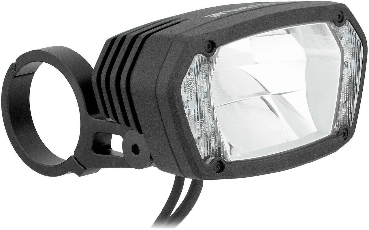 Spezifikationen:Ausführung:Frontlicht (weiß)Montage:LenkerLeuchtmittel:3 x Osram Compact PL, 6 x Osram Compact CL Automotive LEDLeuchtkraft:1800 Lumen (Fernlicht)Leuchtweite:290 mBetriebsmittel:E-Bike-AkkuTechnische Daten:Leuchtmodi:Tagfahrlicht, Abblendlicht, FernlichtSpannung:12 VSchutzklasse:IP68, IK09Maße (H x B x T):48 mm x 85 mm x 46 mmMaterial:Aluminium (6061-T6)Standlicht:Ja (abschaltbar)Schalter:Taster an kabelgebundener FernbedienungFreigaben:Zulassung im Straßenverkehr:Ja, für Fahrräder (nach §67 StVZO)Prüfziffer:K~~1753Kompatibilität:Bosch Purion DisplayBosch Kiox DisplayBosch Performance CX E-Bike AntriebBosch Active Line E-Bike Antrieb ab 2017Bosch Active Line Plus E-Bike AntriebBosch Performance CX Gen3 E-Bike AntriebBosch Performance CX Gen4 E-Bike-AntriebFeatures:blendfreies AbblendlichtSteuerung über E-Bike-Displaysehr klein in Anbetracht der hohen Lichtleistungwasserdicht und schlagfest nach IP68 und IK09Fresnel-Linsensystem für starke Lichtleistung und extra NahausleuchtungTasterschelle mit kabelgebundener Fernbedienung für schnelles Umschalten zwischen Abblend- und Fernlichtsensorgesteuertes Tagfahrlicht mit automatischem Umschalten auf Abblendlicht bei DämmerungLampengehäuse aus einem Stück Aluminium gefrästextrem reparaturfreundlich dank zerlegbarem LampenkopfAusführungen:schwarz / 1800 Lumen, 31,8 mm: