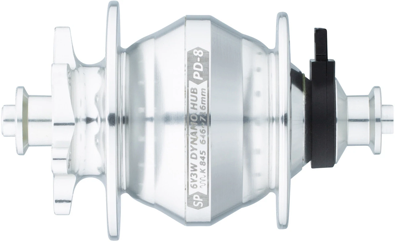 Die P-Serie Dynamos sind nicht nur leistungsstark, sondern auch effizient, sie bieten einen unerreichten Wirkungsgrad von 72 % bei 15 km/h. Obwohl die Scheibenbrems-Variante höheren Belastungen ausgesetzt ist und daher ein im Inneren verstärktes Nabengehäuse besitzt, konnte das Erscheinungsbild filigran und das Gewicht niedrig gehalten werden. Der leistungsstarke Magnetkern sorgt für hohe Performance und auch bei dieser Variante sind verschiedene Farben und Lochzahlen erhältlich.