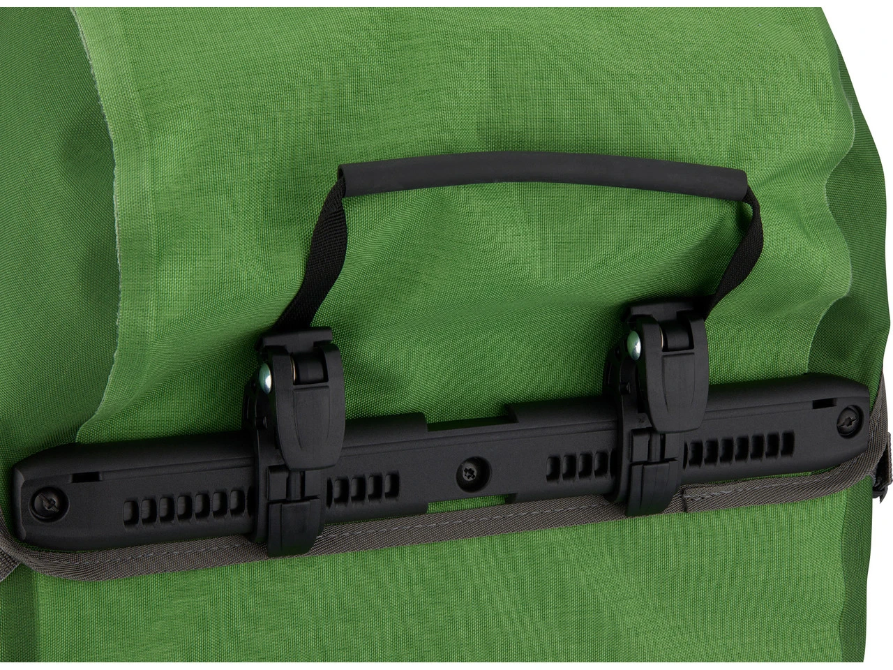 Die ORTLIEB Bike-Packer Plus Fahrradtaschen aus robustem Cordura-Gewebe machen dank ihres eleganten textilen Gewebes eine gute Figur auf Deinem Touring-Bike und sind dabei vollständig wasserdicht. Mit einem Fassungsvermögen von 21 Litern pro Tasche bieten sie Dir viel Stauraum für Ausrüstung, Proviant und andere Habseligkeiten. Ein unter dem Deckelverschluss liegender Staublatz mit leicht bedienbarem Kordelzug schützt Dein Hab und Gut vor Staub, Regen und Schnee. Ein weiteres praktisches Extra bietet die ebenfalls mit Deckelverschluss ausgestattete, dreidimensionale Außentasche, in der Du Kleinigkeiten für schnellen Zugriff aufbewahren kannst. Apropos praktisch: mithilfe des Quick-Lock2.1-Halterungssystems sind die Taschen im Nu an Deinem Gepäckträger befestigt, schnell wieder gelöst und dank Schultertragegurte einfach zu transportieren, wenn Du das Bike mal stehen lässt.