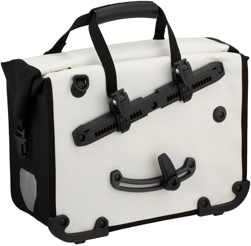 Freigaben:Belastbarkeit (max.):9 kgFeatures:wasserdichte Aktentasche aus PVC-beschichtetem PolyestergewebeRollverschlussQuick-Lock2.1-HalterungssystemPlatz für ein oder zwei DIN A4 Ordner, Schreibwaren, Wertgegenstände etc.Innenunterteilung mit aufgesetzten Taschendurch drehbare Aufhängung wahlweise links (= Standard) oder rechts zu befestigenschräge Einhängung für optimale BeinfreiheitFüßchen zum schonenden Abstellen der TascheHandgriffabnehmbarer, gepolsterter SchultertragegurtD-Ringe zur Befestigung des Schultertragegurtszwei leuchtstarke Reflektoren aus 3M™ Scotchlite™ Reflexmaterialreflektierendes ORTLIEB-Logo vorneaufgesetzte Scheuerleisten auf der Rückseite links und rechts untenMade in GermanyTechnologien:Quick-Lock2.1-Halterungssystem