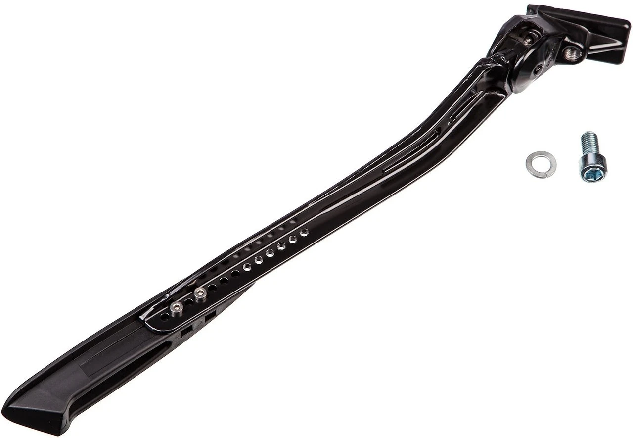 Features:weiter Abstützwinkelsehr hohe Stabilitäteinfache Montagelängenverstellbar in 7,5 mm-Schritten (26″ -28″ )verschleißfreier und auswechselbarer KunststofffußLieferumfang:1 x Parkstütze / Seitenständer Pletscher Zoominkl. Befestigungsmaterial