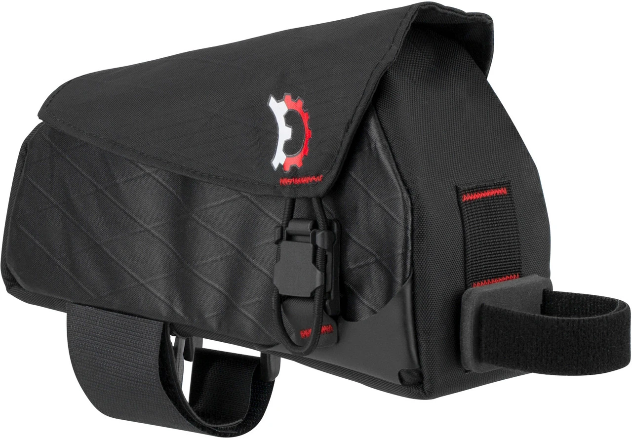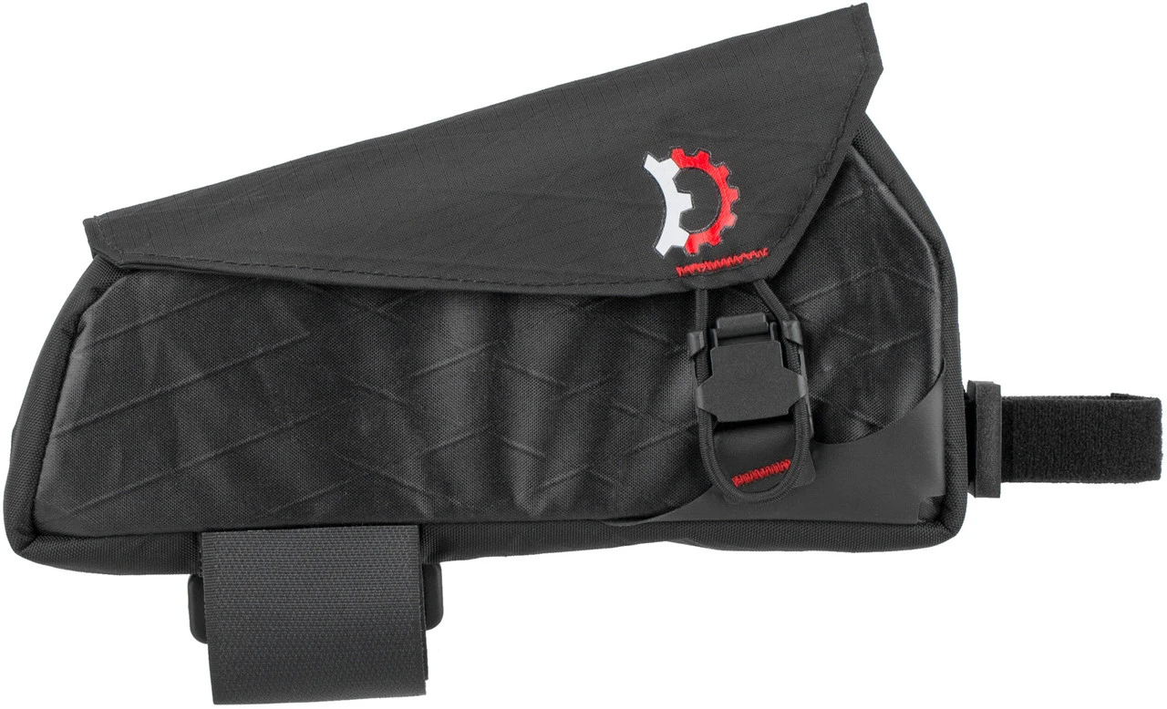 Ein neuer Ansatz für Oberrohrtaschen: Anstelle des obligatorischen Reißverschlusses wird bei der Mag-Tank Oberrohrtasche ein mechanischer Verschluss verwendet, der von einem Magnetverschluss unterstützt wird. Durch das Ziehen an einer Schlaufe kannst du die Tasche leicht mit einer Hand während der Fahrt öffnen. Du hast sofort Zugriff auf die gesamte Tasche. Zum Schließen einfach die Klappe nach unten drücken und die Schnalle rastet ein. So hast du optimalen Zugriff ohne das Deine Sachen durch die Gegend fliegen wenn du mal in den Büschen landest.