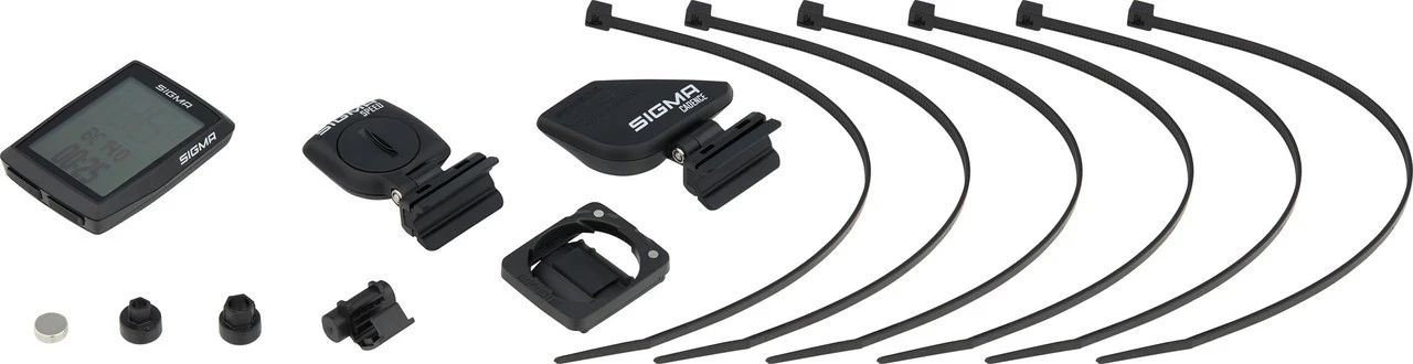 Lieferumfang:1 x Tacho Sigma BC 14.0 WL1 x Universalhalterung Sigma1 x Geschwindigkeitssensor Sigma STS1 x Trittfrequenzsensor Sigma STS1 x Speichenmagnet2 x Gummiring
