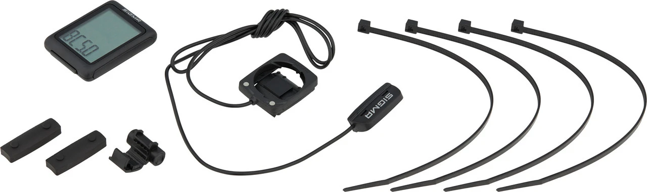Lieferumfang:1 x Tacho Sigma BC 5.01 x Universalhalterung Sigma mit Kabel1 x Speichenmagnet2 x Gummiring