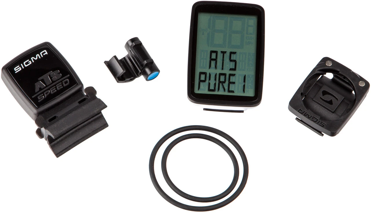 Lieferumfang:1 x Tacho Sigma PURE 1 ATS1 x Geschwindigkeitssender Sigma ATS1 x Halterung Sigma für Funk-Modell1 x Power Magnet Sigma1 x O-Ring 35 mm1 x O-Ring 45 mminkl. Batterien