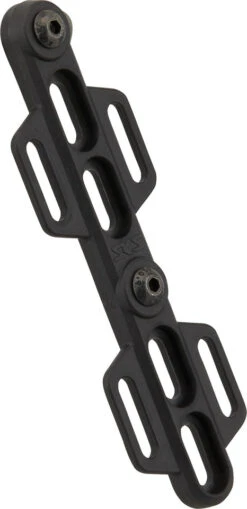 Der SKS Cage Shifter+ Flaschenhalter-Adapter ermöglicht das Verschieben der Flaschenhalter-Bohrungen um 1,5 bis 4,5 cm und bietet zusätzlich seitliche Zubehörhalterungen. Dort lassen sich mithilfe der mitgelieferten Klettverschlussriemen Kleinteile wie Ersatzschlauch, Multitool oder Minipumpe anbringen. Der Adapter besteht aus stabilem, leichtem Kunststoff und fällt dank seines flachen Designs praktisch nicht auf.