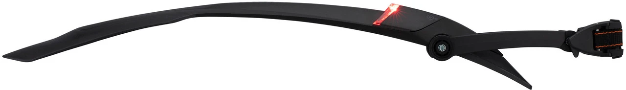 Das Nightblade Schutzblech von SKS bietet Dir auf dunklen, nassen Wegen doppelten Schutz, da es Spritzschutz mit einem integrierten Rücklicht kombiniert. Der vordere Teil des Schutzbleches lässt sich individuell auf Dein Rad einstellen. Zusammen mit dem extra langen Backspoiler wird Dir so der optimale Schutz vor Spritzwasser und Schlamm garantiert. Außerdem ist das Nightblade mit einem Rücklicht ausgestattet. So wirst Du bei Dunkelheit besser gesehen. Sollte der Akku des Rücklichts einmal leer sein, kannst Du es vom Schutzblech abnehmen und per USB aufladen. Dank der praktischen Quick-Release-Befestigung kannst Du das Schutzblech an fast jede Sattelstütze montieren und durch eine kluge 2-Gelenk-Technik ganz einfach ans Rad ausrichten.