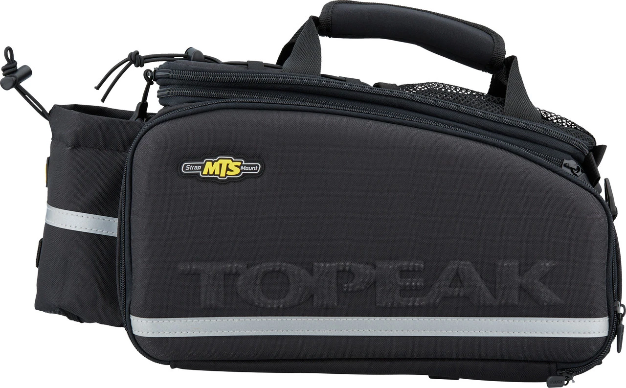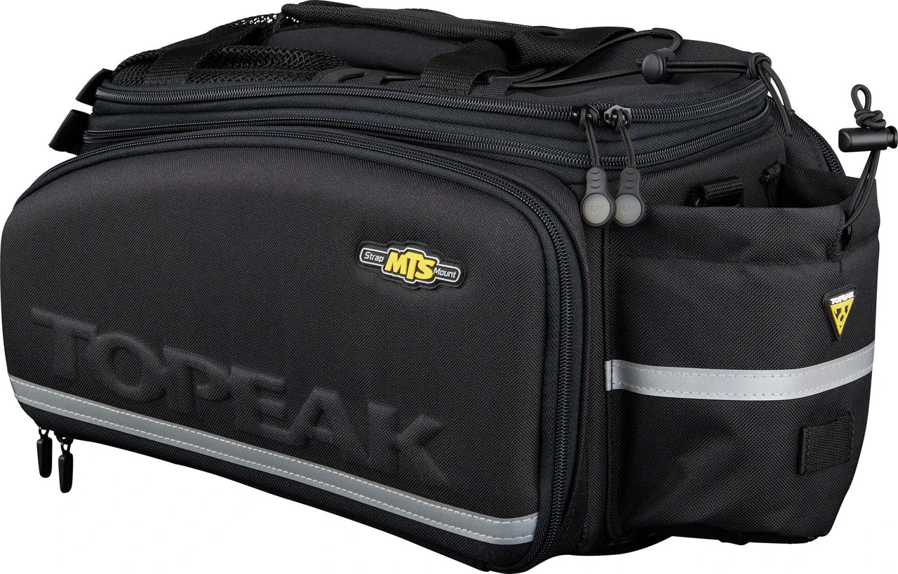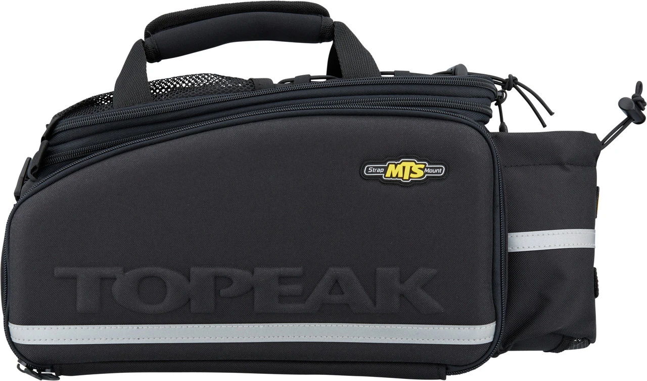 Die MTS TrunkBag DXP von Topeak schafft auf Deinem Gepäckträger jede Menge Stauraum für Gepäck oder Einkäufe, denn sowohl Hauptfach als auch Seitentaschen sind erweiterbar. Dank verschiedener Befestigungsmöglichkeiten findet die MTS TrunkBag DXP auf fast jedem Gepäckträger sicheren Halt.